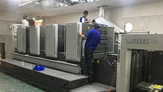 公司擁有2臺日本小森全開四色印刷機,UV上光過油機,全自動燙金模切機,瓦楞機、覆膜機、絲網(wǎng)機、全自動高速糊盒機等印刷后道設(shè)備。擁有高素質(zhì)的設(shè)計人員和從事印刷行業(yè)十多年的技術(shù)隊伍。生產(chǎn)各類彩盒、彩箱、標簽、商標、畫冊。